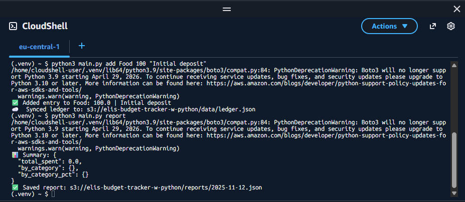 This project demonstrates how to use Python and AWS S3 to build a cloud-based budget tracker.