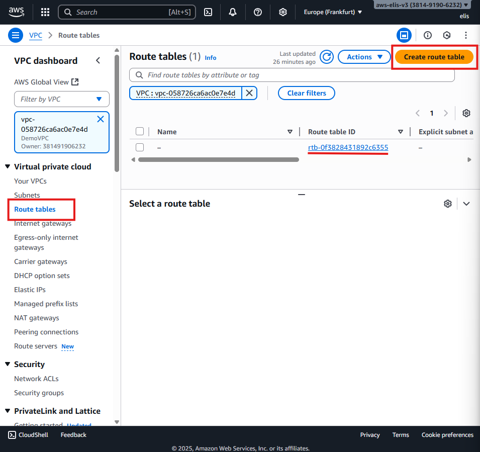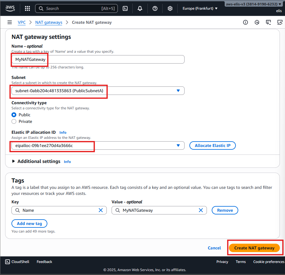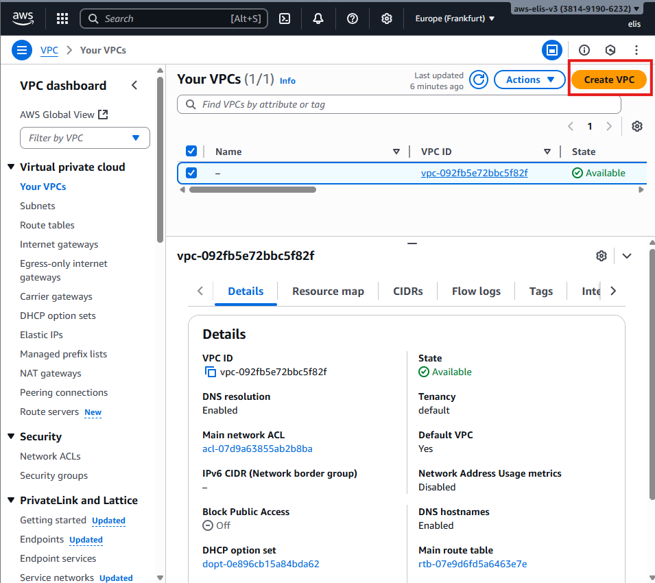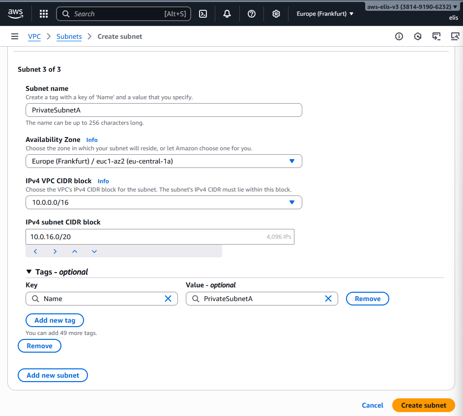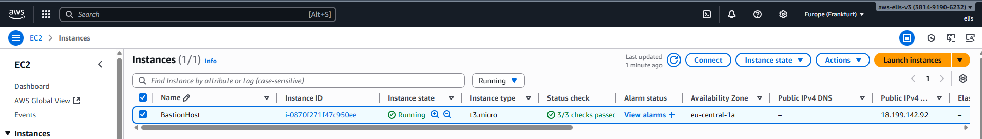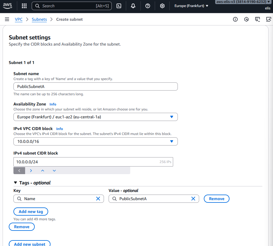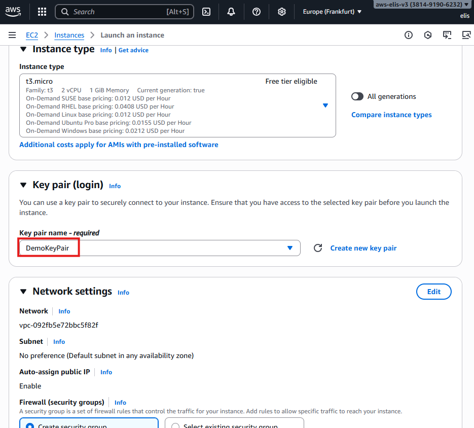 - Region: Europe (Frankfurt) eu-central-1a