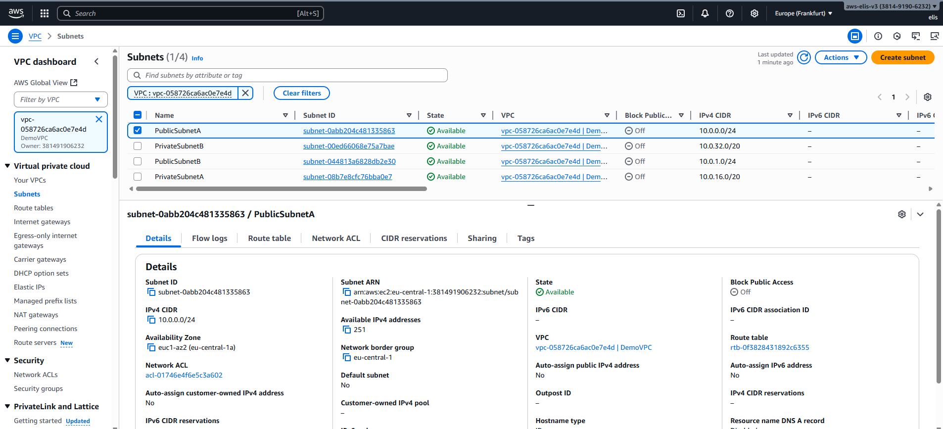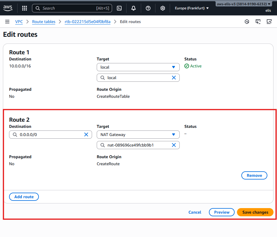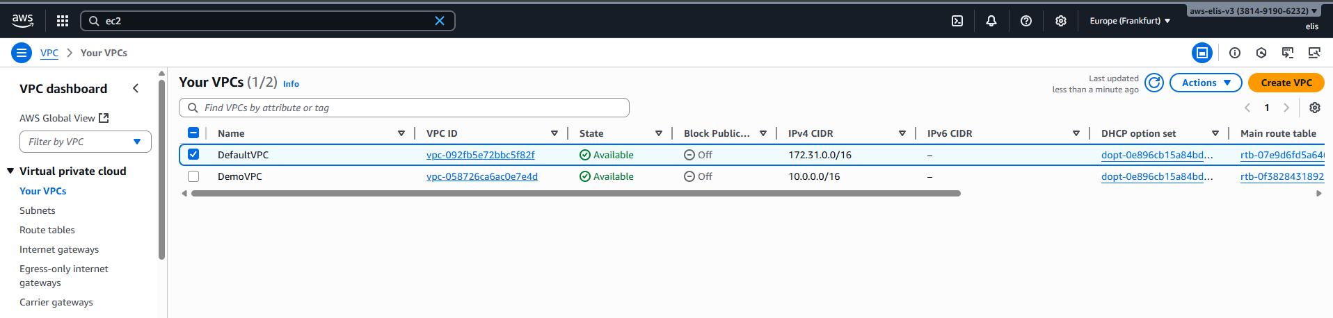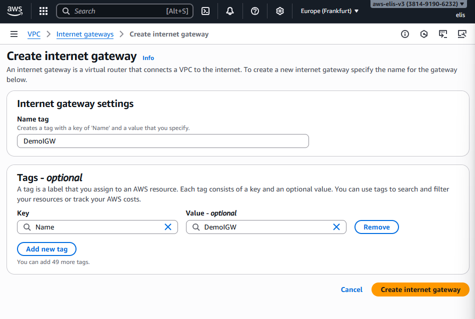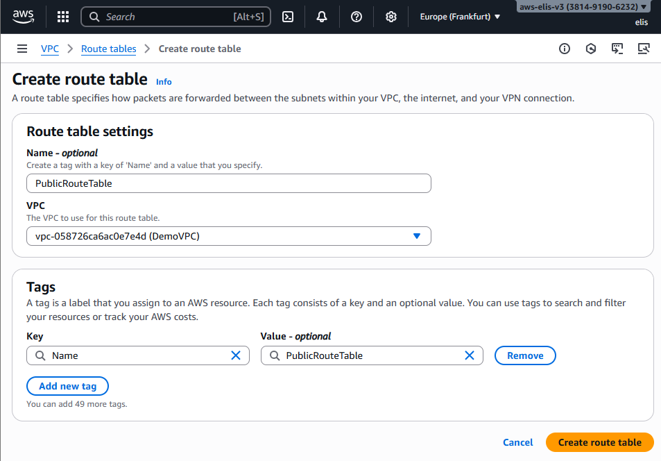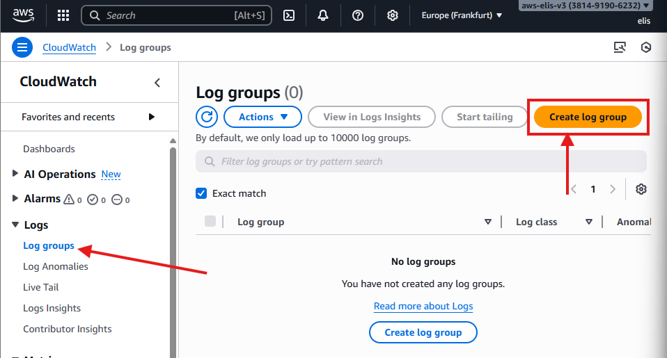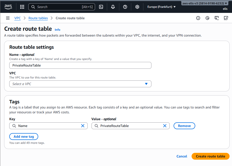 - Region: Europe (Frankfurt) eu-central-1a