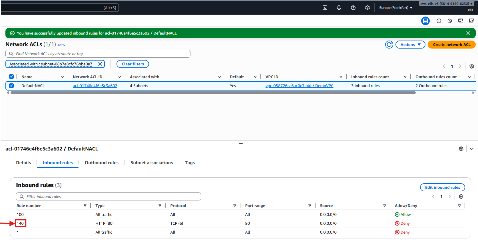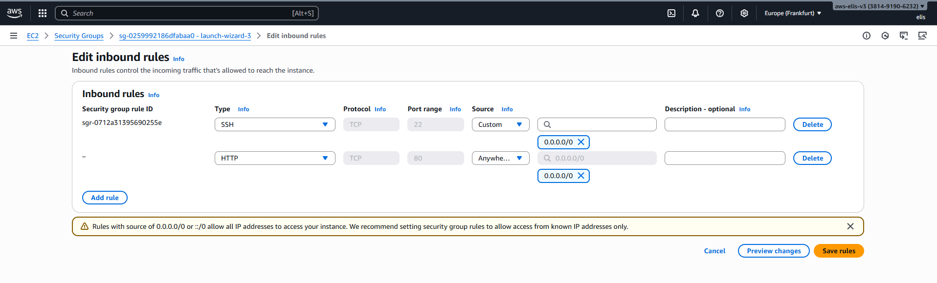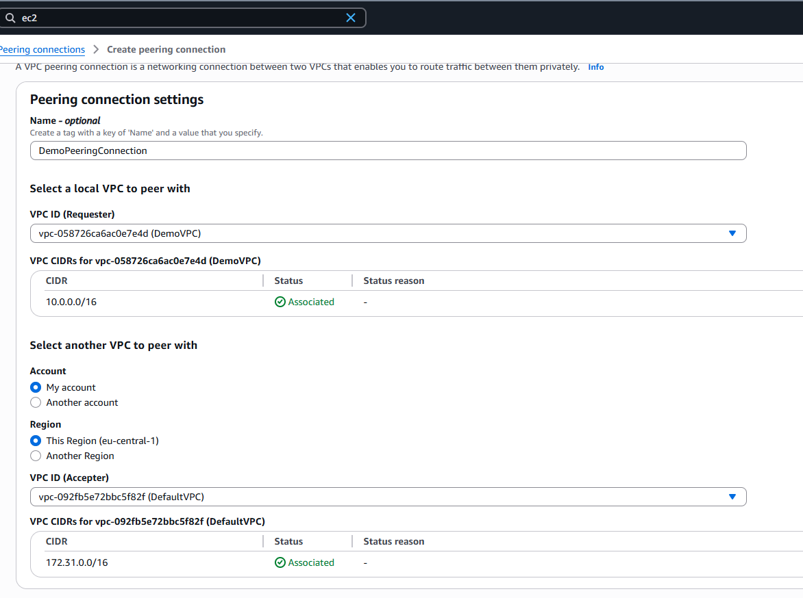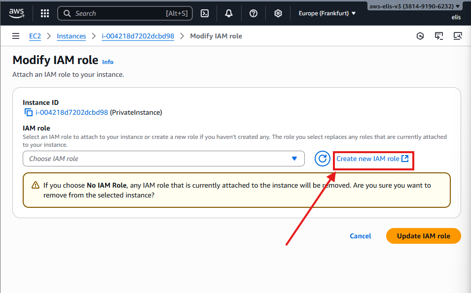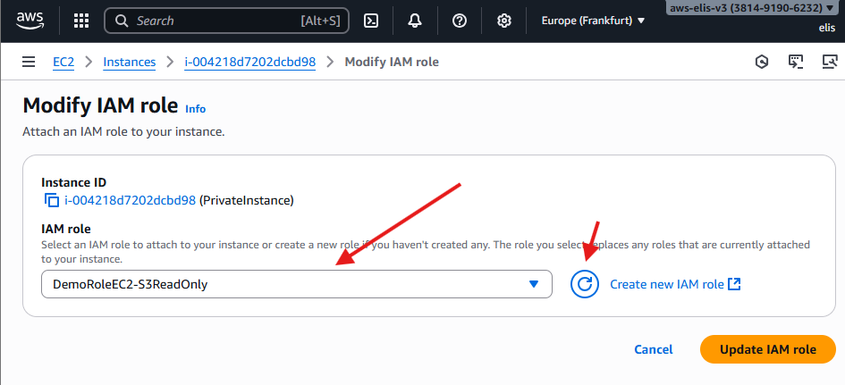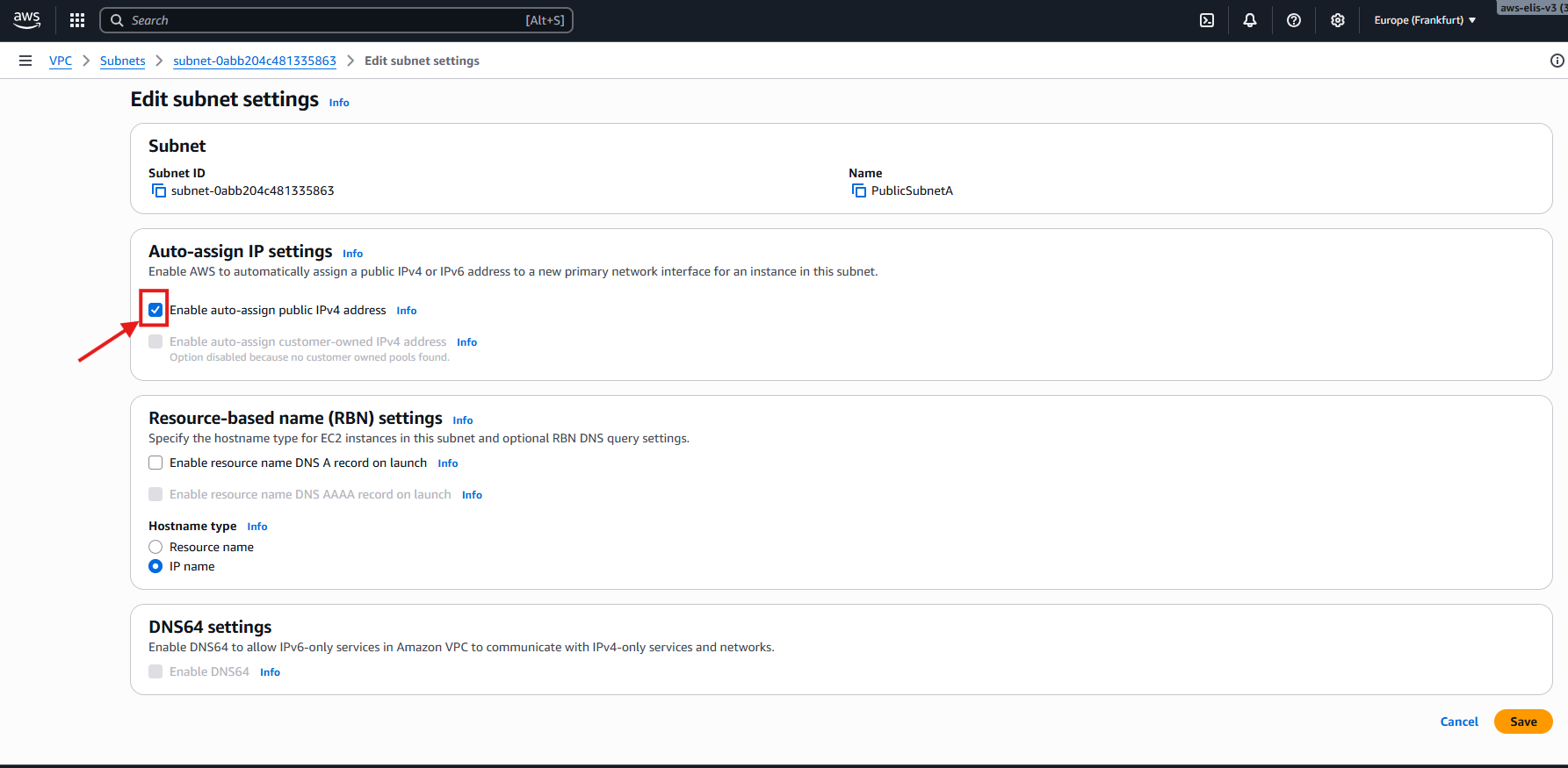 - Region: Europe (Frankfurt) eu-central-1a