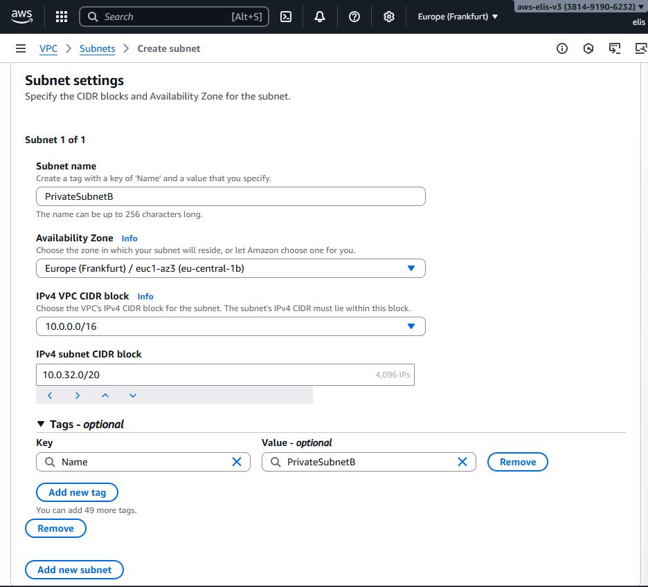 - Region: Europe (Frankfurt) eu-central-1b