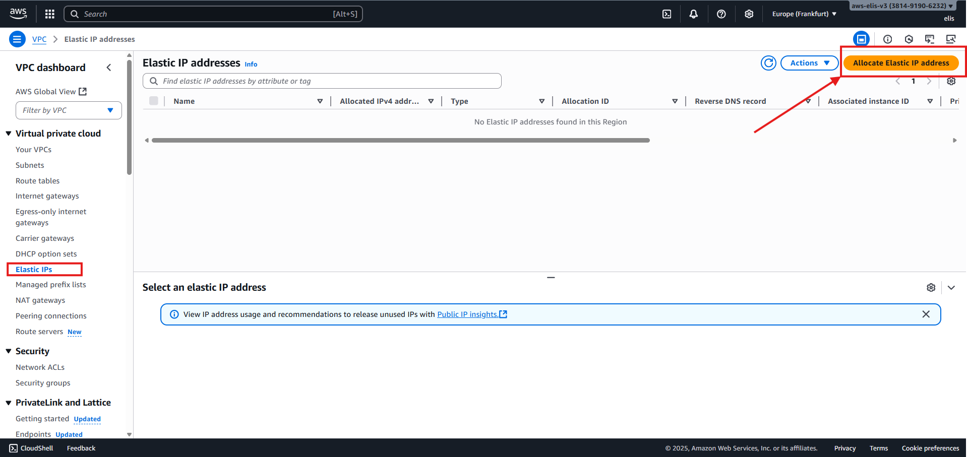 1. Allocate Elastic IP