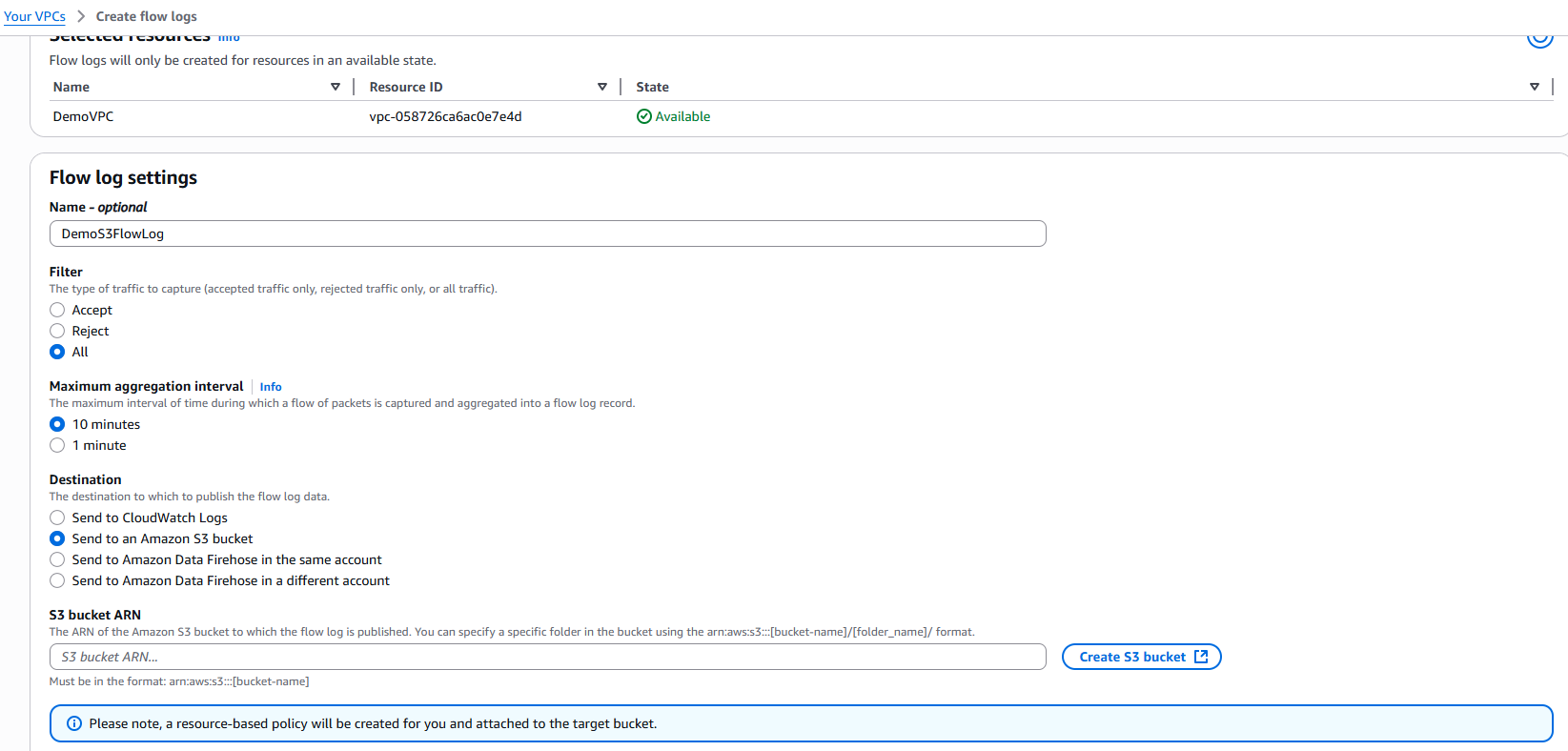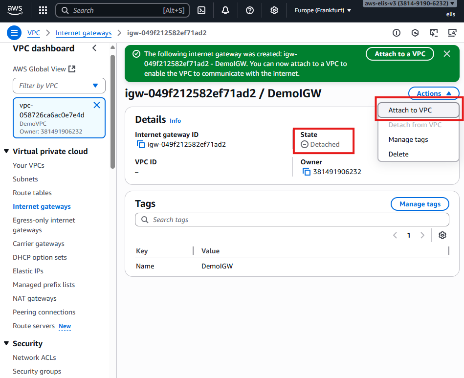 Attach it to DemoVPC:
