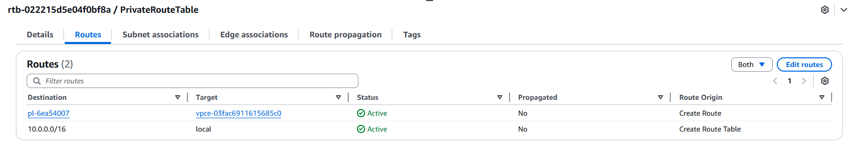 For our private route table, we leave the routes internal for now: