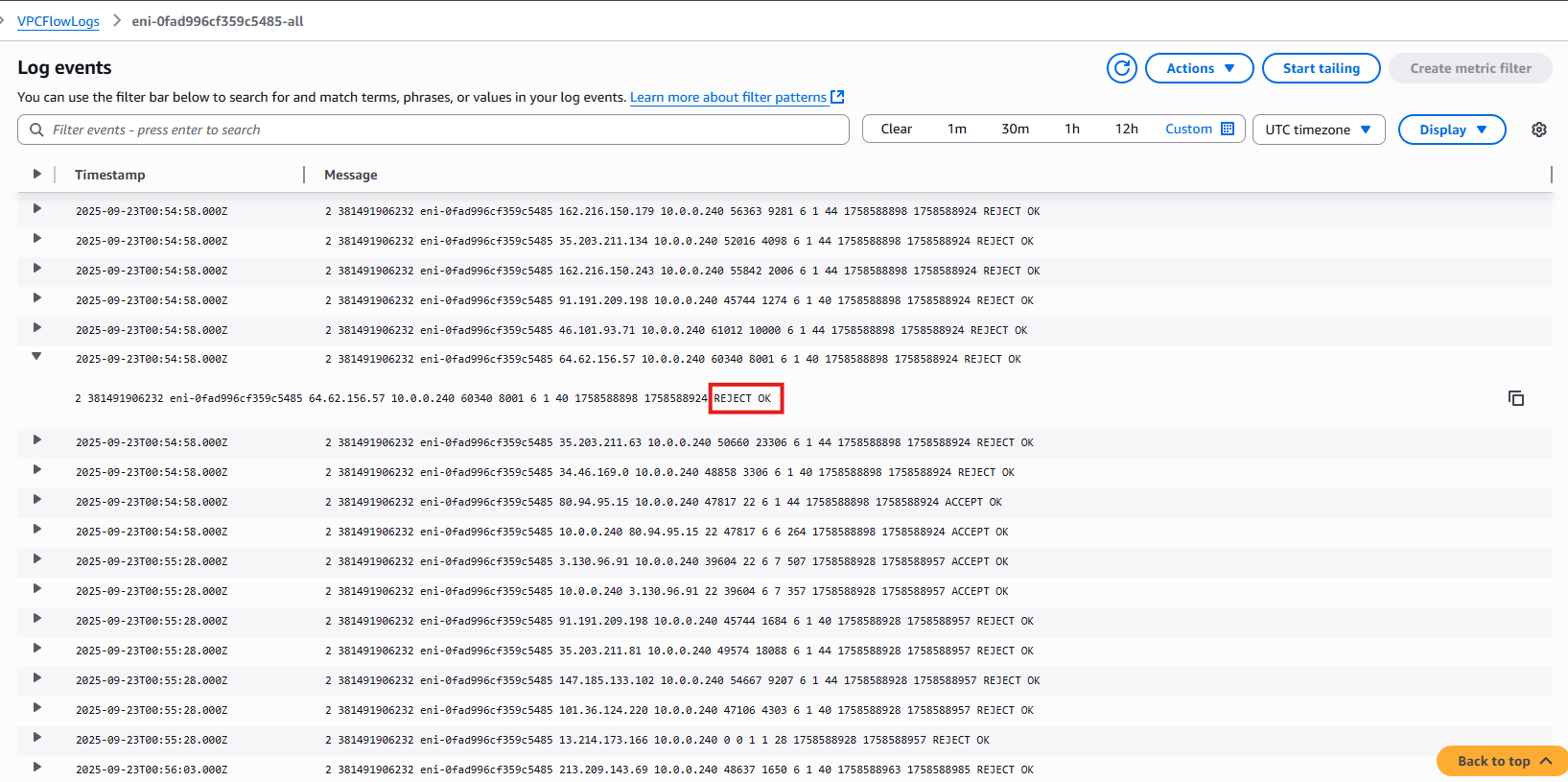 WHERE action = 'REJECT' AND protocol = 6