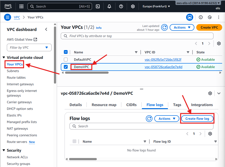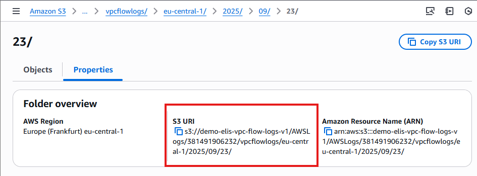 - Replace your-flowlogs-bucket, account-id, and region with your actual values.